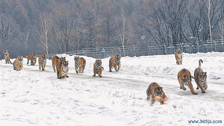 雪地中的东北虎。