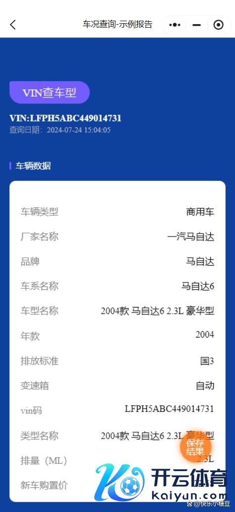 许多第三方平台也提供车架号(VIN)查询车辆信息的办事,这些平台不错浮现车辆的车型、车系称呼、品牌、年款等详备数据。通过输入车架号(VIN),平台会自动提供与车辆联系的统共信息,包括是否相宜排放尺度、是否有过事故记载等。