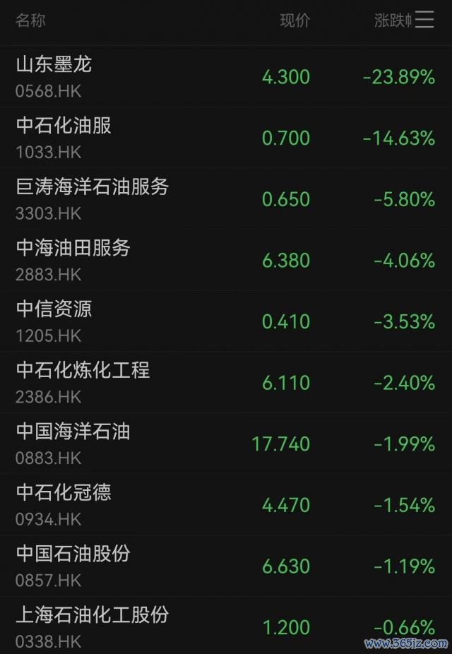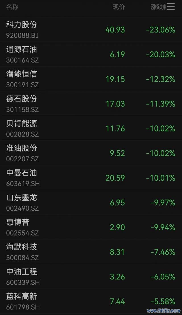 受海外油价大跌影响,A 股油气股集体大跌,航运、军工、核混浊防治等见解也多股大跌。