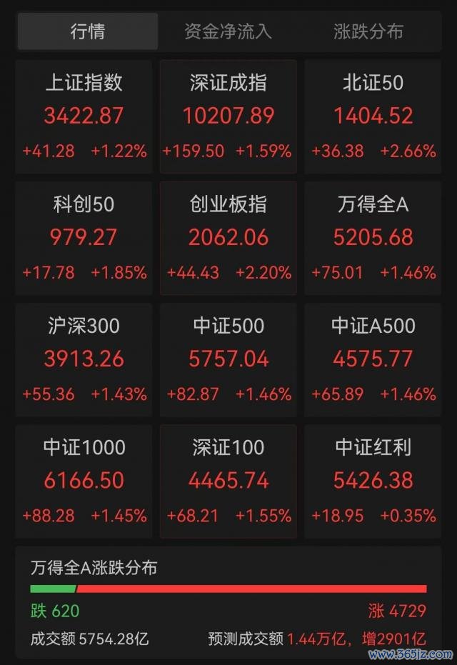 6 月 24 日早盘云开体育,A 股指数走强,收尾 10:15,高潮个股派系达 4729 只。创业板指拉升涨逾 2.00%,沪指、深成指涨超 1%,保障、游戏、汽车零部件等板块指数涨幅居前。