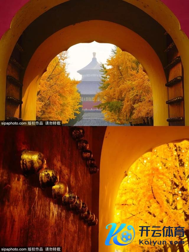 图3、4:初冬时节,天坛公园北门隔邻的银杏大路两旁,银杏树链接披上“黄金甲”,成为京城又一不雅赏银杏胜地。金黄的银杏叶与古开采交相衬映,更显古代开采与天坛生态之好意思。