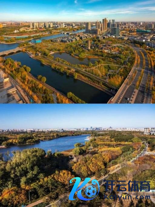 图5、6:从高空俯视副中心,大运河“三庙一塔”、大运河沿岸秋色正浓、好意思风景征。(图源:北京日报客户端)