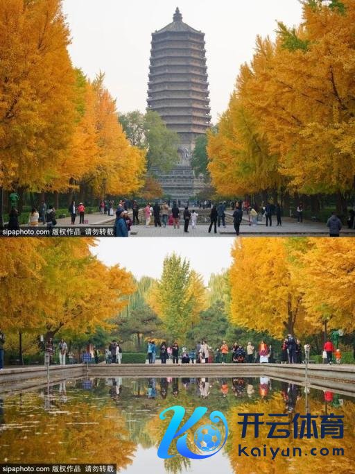 图9、10:近日,颐和园内树木已换上金黄的华服,在湖水的衬托下,好意思成高充足度油画。(图源:@CCTV记载)