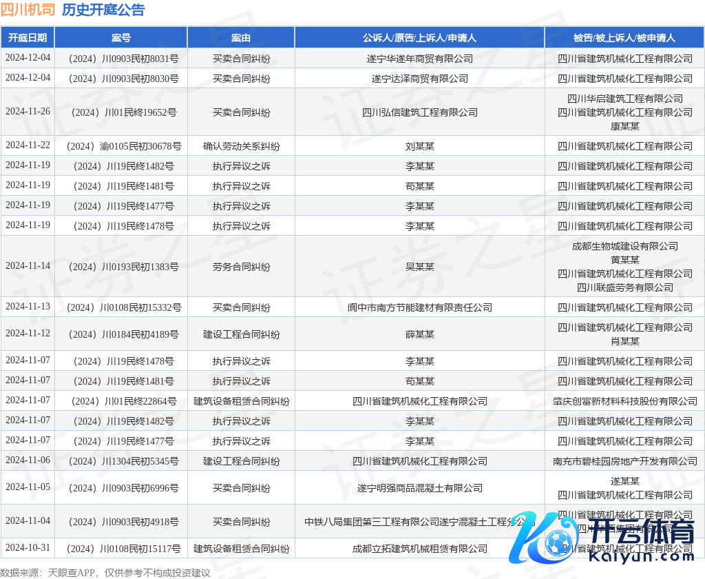 本站音尘,字据天眼查APP闪现,近日公布了一则四川省建筑机械化工程有限公司当作被告/被上诉东谈主的开庭公告开云体育,详备现实如下: