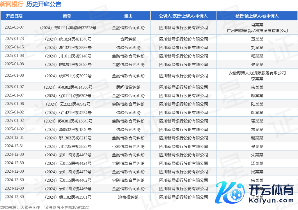 本站音尘,左证天眼查APP流露开云体育,近日公布了一则四川新网银行股份有限公司行为原告/上诉东说念主的开庭公告,堤防本色如下: