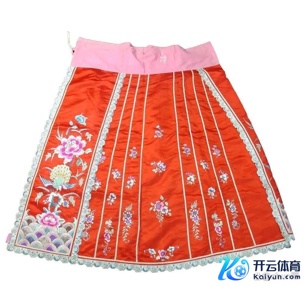 到了清代,马面裙仅行为汉族女性的衣饰保留住来,作风更追求丽都荣华,色调丰富的月华裙出现,红裙成为最受接待的神气。马面裙注重裙门和裙边的掩盖,接受打籽绣、盘金绣、贴布绣、绘图等工艺,掩盖愈加丰富,常见海水江崖、龙凤、吉利八宝、花鸟虫蝶等吉利纹样。
