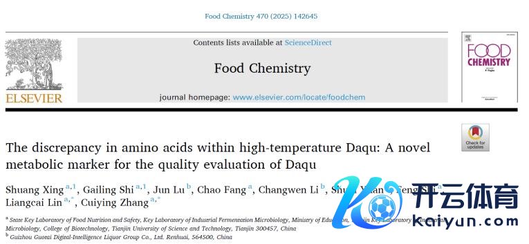 2025年12月25日,国台数智酒业集团蚁集天津科技大学张翠英熟悉团队在外洋食物Top期刊《Food Chemistry》发表题为“The discrepancy in amino acids within high-temperature Daqu:A novel metabolic marker for the quality evaluation of Daqu”的磋议性论文。