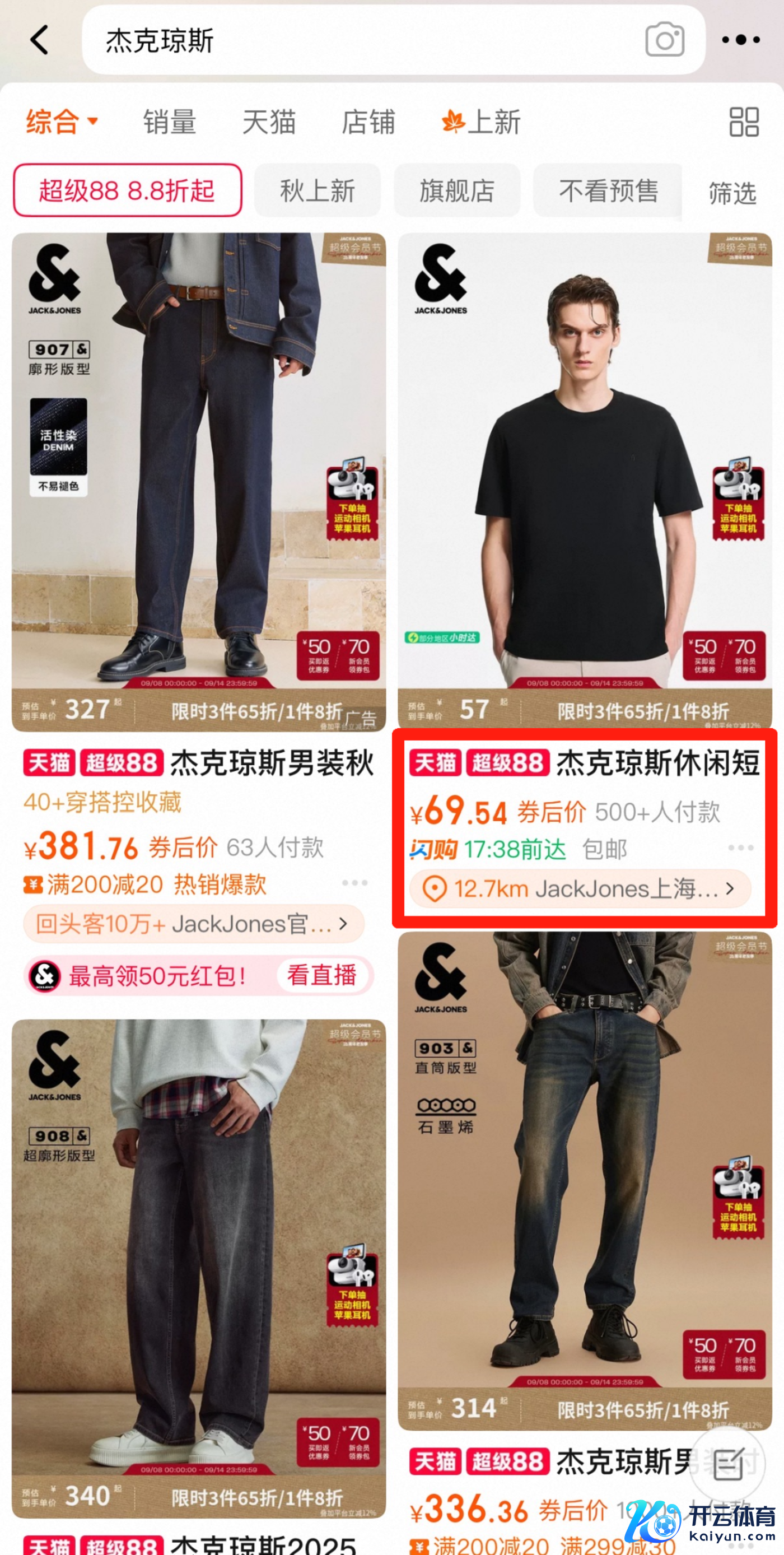 在淘宝搜索「杰克琼斯」等品牌已可看到带闪购标的商品
