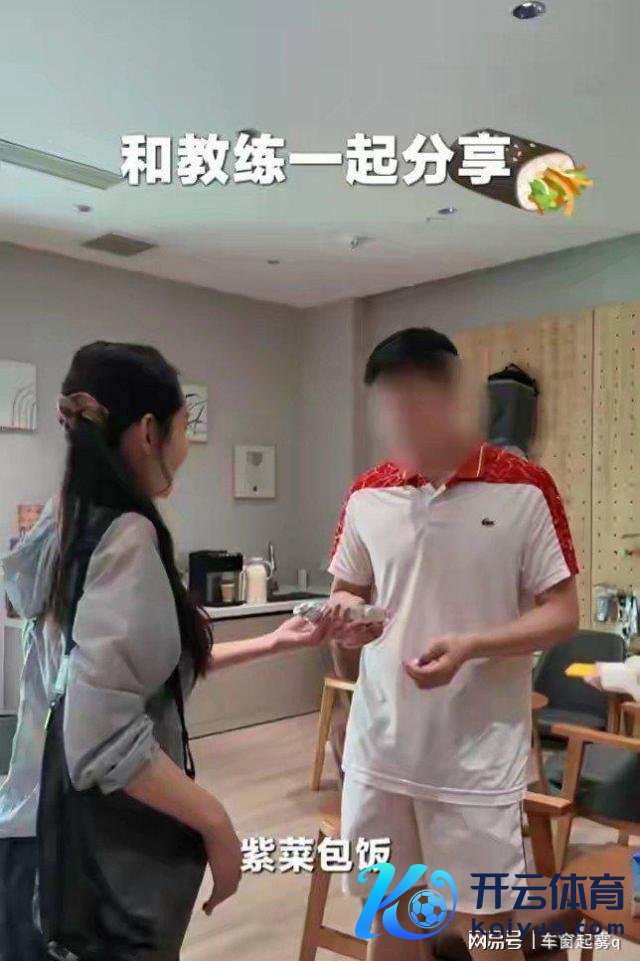 累到歇脚的秋瓷炫没忘共享好意思食,把好处紫菜包饭递给教师,还成心强调 " 这是我我方作念的 "。
