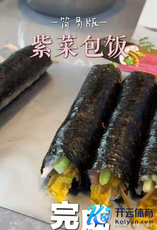 海苔铺平、米饭合手匀,再码上鸡蛋、火腿、蟹棒和牛蒡,一套经过下来中途落发,转瞬就把紫菜包饭作念得像模像样,本来她早想到通顺后会饿,成心提前备好口粮,这提防劲儿难怪于晓光把她宠成宝。