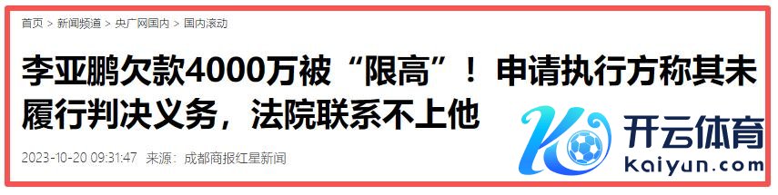 因为这个形状,李亚鹏因还不上叮咛的4000万,被法院实行成为了“老赖”。