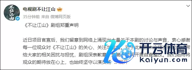 刚刚,电视剧《不让山河》官方微博发布声明,就不决稿贵寓流出激发的困扰致歉,并已开展自查整改。重申将以杨洋演出的男主李叱为中枢,看管脚色的齐全与鲜嫩。否定“阴阳脚本”、“私行加戏”,强调整体演员脚本一致。对于杨洋在进组前手部受伤,已第一时刻和团队调换,并已笔据本色情况转机行程。