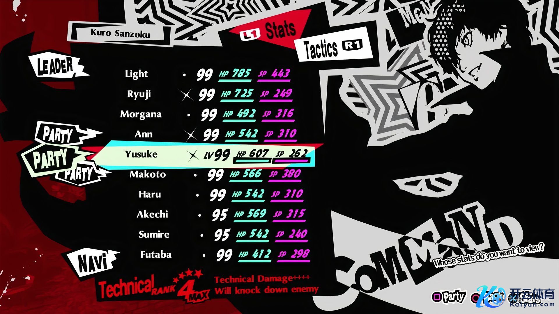 第一步:聘用参加殿堂的成员 P5R 中的每个殿堂常常王人会证据该章节新加入的成员(如斑目好意思术馆的喜多川祐介、奥村天地基地的奥村春等)来竖立敌东说念主瑕疵。因此,在参加殿堂前,提出带上新解锁的脚色,再搭配另外两名接管过战争考试的队友。