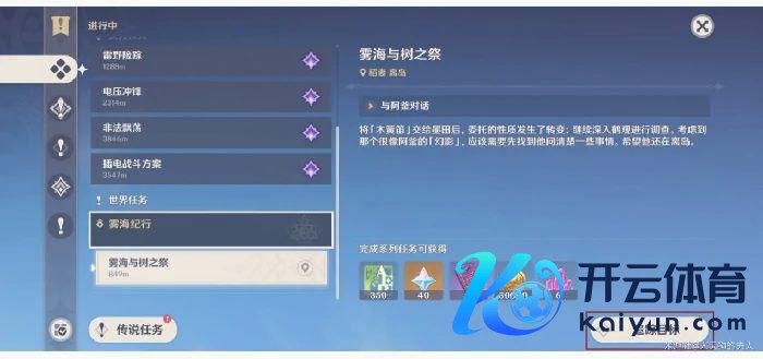 游戏2.2版块第三天雾海游记任务,要完成雾海与树之祭干线任务,中枢是找洒落能量,底下是能量位置信息和任务经过。