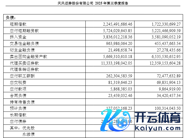 天风证券2025年三季报的吞并财富欠债表走漏,放手论说期末,天风证券应对债券账面金额为288.67亿元,较2024年末的378.57亿元的领域有所减少。