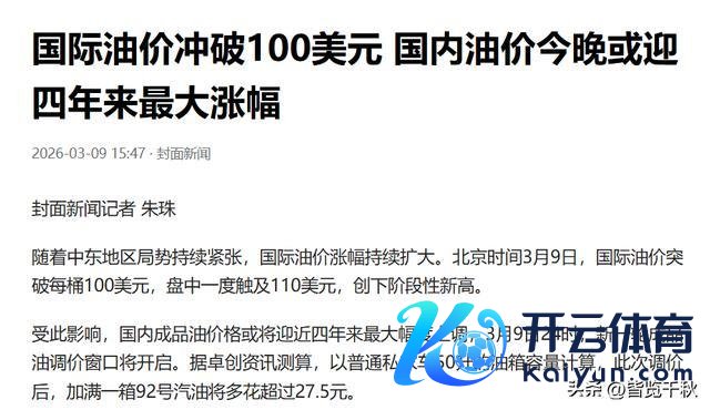 100好意思元/桶已是显现,北京时间3月9日,国外油价打破每桶100好意思元,盘中一度涉及110好意思元,创下阶段性新高。