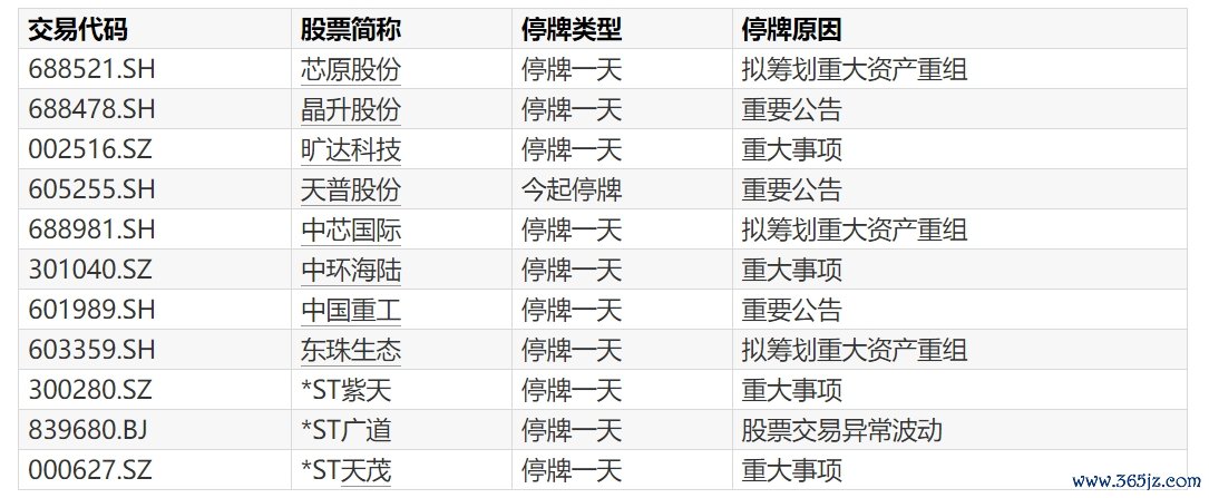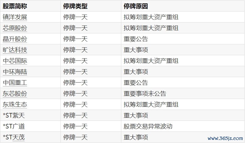 A股停牌请示:9股本日停牌A股停牌请示:9股本日停牌
